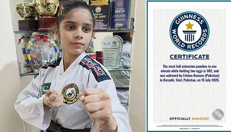 پاکستان کی نامور مارشل آرٹس کھلاڑی فاطمہ نسیم نے اپنی صلاحیتوں کا ایک اور ناقابلِ یقین مظاہرہ کرتے ہوئے چھٹا گنیز ورلڈ ریکارڈ اپنے نام کرلیا۔