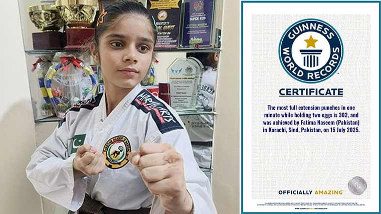 11 سالہ فاطمہ نے صرف ایک منٹ میں دونوں ہاتھوں میں انڈا تھام کر 302 پنچز لگا کر نہ صرف رفتار بلکہ درستی اور کنٹرول کا شاندار مظاہرہ پیش کیا، اس دوران انڈے میں معمولی سی دراڑ بھی کوشش کو ناکام بنا سکتی تھی لیکن فاطمہ نے مکمل اعتماد اور مہارت سے یہ چیلنج مکمل کیا۔